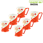 Raja Chai/Tea/Coffee Mugs - Z-Series, Orange & White Floral, 180 ml Pack of 6