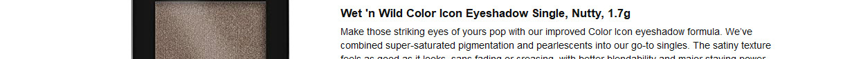 One is no longer the loneliest number with these stand-out eye shadows! High-pigmentation and pearl density create a unique, satiny texture that lasts all day and won’t fade or crease. Each shade features a jet-milled base and silicone technology for a long-wearing formula that blends well and applies evenly. A versatile collection of classic and trend shades can be easily worn alone or combined for a variety of looks. Silky, long-lasting, ultra-pigmented colors. High-pigmentation and pearl-density blends well and applies evenly. A jet-milled base and silicone technology deliver hours of crease-resistant wear. A variety of classic and trend shades.