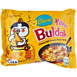 This Korean Ramen Noodle with Cheese flavour is a perfect harmony between Hot Chicken Flavour and Cheese. Simple and delicious, it is the perfect choice for your evening snack or anytime hunger. Spicy fried chicken ramen cheese flavour, savoury spicy chicken with melted cheese taste that will leave you craving for more cheese buldalk bokkeummyeon. More spicy than the real fire noodles. Spaghetti style noodles in a unique really spicy sauce (4404 SHU) halal certified.