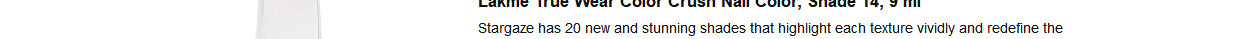 Trendy shades on the go and for every mood, Lakme True Wear Color Crush nail enamel make the world a better place! Long-lasting by nature and chip-resistant, Lakme True Wear Color Crush coats your nails to perfection by giving a vibrant and elegant look. Add a stroke of classic color to your nails with Lakme True Wear Color Crush Nail Color. A color for all seasons and occasions, the shades are simply a must-have.