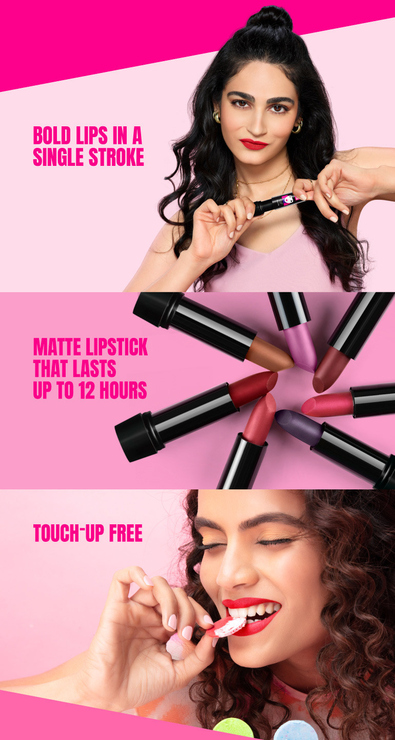 The brand for every teenage girl who wants to have fun and look good at the same time is here. The Brand New Range of Matte Lipsticks from the Elle 18 range is here. Matte is in trend and we have the range to keep you trending. Apply a bold stroke of Elle 18 Color Pops Matte Lip Colour to get the perfect look.