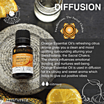 For Diffusion: Orange essential oil’s refreshing citrus aroma gives you a clean and mood uplifting surrounding attuning your Svadhistana; The Sacral Chakra. This chakra influences emotional bonding and nurtures well-being, self-containment, charisma, core strength, self-identity, self-empowerment, and power struggles.