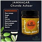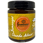 Graminway Jamnagar Chunda Achar is a sweet mango pickle made with the finest quality of raw mangoes mixed with the choicest spices to create this delightful tangy and sweet pickle. Pickles play a key role in Indian cuisine. No Indian meal is complete without a smidgen of a pickle. Relish it with a leftover puri, fresh paratha, dal chawal, plain white rice, or as an accompaniment with any other regular meal. We assure you of nostalgic flavours that can make your taste buds tickle the same way they will remind you of your childhood summer vacations. Each mango is carefully cleaned, dried, and cut in a hygienic facility before pickling. It is pickled with best quality spices and other ingredients.