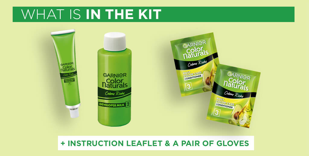 About the product Elevate your hair game with Garnier Naturals Hair Colour in Natural Black. This rich and luxurious hair colour provides vibrant, long-lasting results while nourishing your hair with natural ingredients for a healthier-looking finish. Garnier Colour Naturals Crème hair colour gives Grey Coverage and a beautiful rich colour. It is an ammonia-free hair colour and has a superior Colour Lock technology which gives you a rich long-lasting colour that lasts up to 8 weeks. Colour Naturals comes in a range of 8 gorgeous shades especially suited for Indian skin tones. It is available in an easy-to-use kit which can be used at your convenience in the comfort of your house! It is enriched with the goodness of 3 oils; Almond, Olive and Avocado which nourish hair and provide shiny, long-lasting colour. Whether you're covering greys, enhancing your natural shade, or trying a new look, Garnier Naturals Hair Colour delivers salon-quality results in the comfort of your own home.