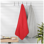 Liao Micro Fibre Cleaning/Dusting Cloth - G130061, Soft, Super Absorbent, Quick Dry, Red & Grey, 2 pcs