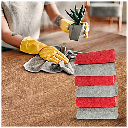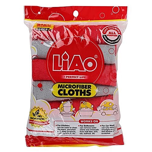 No Question askedLiao Microfiber Cleaning/Dusting Cloth, Multipurpose, Soft, Super Absorbent, Quick Drying, Red & Grey, G130064