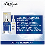 It instantly boosts skin moisturisation and texture for a brighter and radiant look. Acetyl C, Adenosine & Fibrelastyl to intensely whiten the skin, reduce degradation of elastin in skin & control melanin production; thus preventing skin darkening. Dermatologically tested. Suited for all skin types.