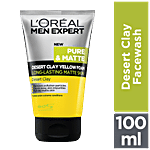 L'Oreal Paris Men Expert Dessert Clay Facewash is a purifying facial foam wash for men. Helps effectively remove pollution particles. Formulated with desert clay to thoroughly remove skin impurities. Reduces shine & greasiness even under high temperature. Leaves skin pure, clean, matte & fresh all day. Dermatologist-tested.