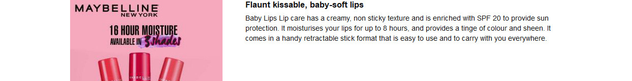 Designed to keep your lips protected and moisturised, Baby Lips Colour Changing Lip Balm by Maybelline New York hydrates and renews lips, giving you soft, moist, and luscious lips, throughout the day. When applied, the white lip balm changes its colour and transforms into a new colour which is uniquely yours.