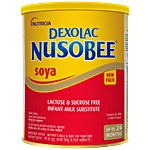 Dexolac Nusobee Soya Infant Formula is an infant milk substitute for babies up to 24 months of age. It is a lactose and sucrose-free formula designed to fulfil the nutrient requirements of babies with lactose intolerance. The formula should only be used in case of diarrhoea due to lactose intolerance. Formulated with essential nutrients like nucleotides, medium-chain triglycerides, taurine, vitamins, minerals, antioxidants, L-carnitine.
