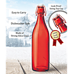 No Question askedTreo Glass Bottle With Clip Lid - Red, Transparent