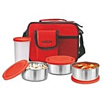 Milton Steel Combi Red Tiffin Box Set - With Bag, 350 ml Set of 4