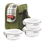 No Question askedTreo Health First Round Glass Tiffin Set - With Olive Green Bag