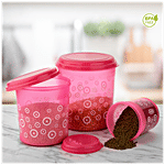 Asian Stylo Storage Container - Pink, Plastic, Printed, Round, 3 pcs (1 L+2.5 L+ 4.1 L)