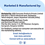 Manufactured & Marketed by: VRB Consumer Products Private Limited, Plot SP3-7, RIICO Industrial Area, Keshwana, Tehsil-Kotputli, Jaipur, Rajasthan- 303108