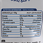 Average per 100 g : Energy 423.1 Kcal/1785.6kj Protein 6.9 g Carbohydrate 79.5 g Of which sugars 4.1 g Fat 8.1g Trans Fat 0 g Cholesterol 0 g Fibre 1 g Sodium 1.1 g
