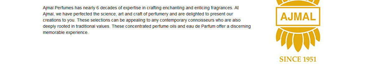 About the ProductA brand with a rich heritage acquired through over 64 years of experience and know-how in the art of perfumery, Ajmal Perfumes proudly presents the finest collection of contemporary fragrances with mesmerizing scents. Perfecting the science, art and craft of perfumery, the brand believes that well-crafted fragrances say a lot about you and the way you exude yourself.