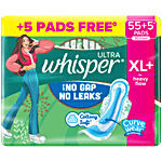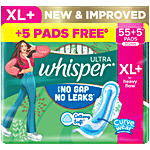 Whisper Ultra Upto No Gap No Leaks Sanitary Pads For Heavy Flow - XL+, 60 pcs (40+20 Pads Free)
