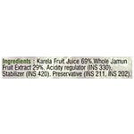 Karela Fruit Juice 69%, Whole Jamun Fruit Extract 29%, Acidity Regulator (INS 330), Stabiliser (INS 420), Preservative (INS 211, INS 202).