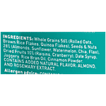 Whole Grains (Rolled Oats, Brown Rice Flakes, Quinoa Flakes), Seeds (Sunflower, Watermelon, Chia, Flax), Almonds, Dried Fruits (Raisins, Cranberries), Date Syrup, Jaggery, Soy Protein Flakes, Rice Bran Oil, Himalayan Pink Salt