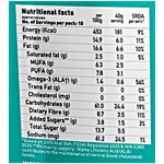 Nutrition per gram/ml: 100g Serving Size: 40g Energy (Kcal): 453 kcal Protein (g): 14.9 g Fat (g): 16.6 g Saturated fat (g): 2.5 g MUFA (g): 6.3 g PUFA (g): 7.8 g Omega-3 (ALAt) (g): 1.4 g Trans Fat (g): 0 g Cholesterol (mg): 0 mg Carbohydrates (g): 61.0 g Dietary Fibre (g): 8.7 g Added Sugars** (g): 3.8 g Total Sugar (g): 13.7 g Sodium (mg): 61.2 mg