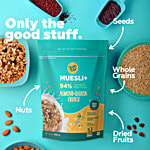 The almond + quinoa muesli is a healthy, protein-rich breakfast cereal made from a blend of whole grains, nuts, and seeds. It features crunchy clusters of quinoa, oats, brown rice, flax, chia, almonds, and dried fruits, providing a nutritious and energising start to the day.