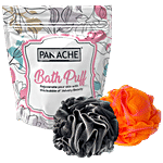 Panache Premium Bath Puff Loofah Set - Exfoliates Skin, Black & Orange Colours, 2 pcs