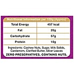 Cashew Nuts, Sugar, Milk Solids, Cardamom, Clarified Butter, Silver Leaves
