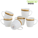 BP Bharat Chai/Tea/Coffee Bonechina White Mugs - With Black Design, 160 ml (Set of 6)