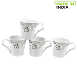 BP Bharat Chai/Tea/Coffee Bonechina Gray & Black Floral Mugs