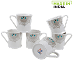 BP Bharat Chai/Tea/Coffee Bonechina Gray Ethnic Print With Blue Mug, 160 ml (Set of 6)