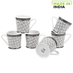 BP Bharat Chai/Tea/Coffee Bonechina Black & White Abstract Print Mug, 170 ml (Set of 6)