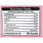 Fortified Wheat Flour, Sugar, Edible Veg Oil/Hydrogenated Veg, Fat, Starch, Salt, Dough Conditioner (E-233), Milk Powder Contains Added Artificial Strawberry Flavouring Substance & Added Permitted Synthetic Foods Colours (E-127).