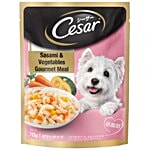 Delight your dog with the new Cesar wet dog food, an extremely delicious savoury meal with premium Sasami meat for your dog. It is a complementary dog food to be fed with a complete and balanced dog meal such as Pedigree Dry Food. Made with high-quality ingredients, this gourmet dog food is cooked in a way that keeps the natural taste of its ingredients intact. This gourmet dog meal provides your dog with a lot of taste but with lower fat. Made with steamed Sasami and vegetables in a jelly base, Cesar promises to make mealtime more engaging and fun. It has an irresistible taste and palatability with 9% protein, 5% fibre, 87% moisture, and 35 kcal energy per pack. It is suitable for Pugs, Beagle to Labrador, Golden Retriever and German shepherd. Every dog deserves to be loved and treating them with Cesar is a great way to love them back.