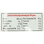 Nutrition per gram/ml: 100g Energy: 900 kcal Poly Unsaturated Fat: 42g Carbohydrates: 0g Trans Fat: 0g Cholesterol: 0 mg Protein: 0g Saturated Fat: 21 g Sodium: 0g Mono Unsaturated Fat: 37 g Sugars: 0g