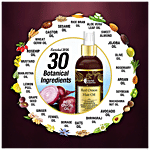 Caprylic Capric Triglyceride, Sesame Cold Pressed Oil, Rice Bran Oil, Castor Cold Pressed Oil, Sweet Almond Cold Pressed Oil, Golden Virgin Jojoba Cold Pressed Oil, Extra Virgin Olive Cold Pressed Oil, Red Onion Cold Pressed Oil, Organic Moroccan Argan Cold Pressed Oil, Soybean Oil, Macadamia Cold Pressed Oil, Avocado Cold Pressed Oil, Oats Kernel Oil, Vitamin E, Bhringraj Oil, Gotu Kola Extract, Curry Leaf Extract, Aloe Vera Leaf Oil, Ratan Jot Extract, Brahmi Extract, Borage Cold Pressed Oil, Fennel Oil, Ginger Oil, Grapeseed Cold Pressed Oil, Lemon Peel Oil, Manjistha Oil, Mustard Cold Pressed Oil, Rosehip Cold Pressed Oil, Wheat Germ Cold Pressed Oil, Hibiscus Rosa Extract, Rosemary Essential Oil
