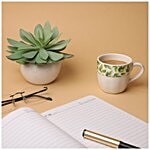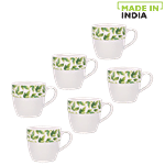 Parka Chai/Tea/Coffee Earthenware Cups - White Base With Green Leaves Border, 160 ml (Set of 6)