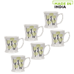 Raja Chai/Bone China Tea/Coffee Cups - White Base With Green Tree, 160 ml (Set of 6)