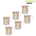 Raja Chai/Tea/Coffee Bone China Cups - Multicolour Floral With Pink Border, 160 ml (Pack Of 6)