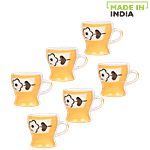 Anurag Chai/Tea/Coffee Stoneware Cups - Yellow Base With Brown Floral, 160 ml Pack Of 6