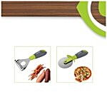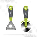 Home puff peeler and pizza cutter are the necessary tools used by home cooks and professional chefs across the globe. It features a non-slip silicone handle. This peeler and pizza cutter come with non-slip silicone handle that has heat-resistance and are easy to clean with safe blade cover that has built-in finger protection to prevent accidents during the use and hanging holes are strong and comfortable grip in your hand and ergonomically designed for excellent balance and control for continued work.
