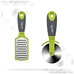 Grater and Pizza Cutter is a stainless steel blade that is perfect for shredding/grating and cutting, cutter you can easily to cut pizza, sandwiches, pastry dough, flatbread and much more. This stainless steel shredder/grater that grates firm cheeses and vegetables into large shreds while retaining their textures. It is made from durable material and safe for use. The most durable soft, ergonomic designed handles are perfectly shaped heads is comfortable grip thickness with hanging loops for easy storage of anywhere. Grater and pizza cutter has sturdy ergonomic design is what distinguishes these high-quality products from other similar products. Grater and pizza cutter are the necessary tools used by home cooks and professional chefs across the globe.