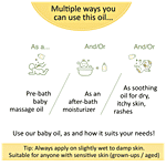 Precious oil for your precious baby! It takes milk of 20 fresh coconuts to extract just 100 ml of virgin coconut oil. This form of wet extracted (centrifuge process) virgin coconut oil retains maximum anti-oxidants, moisture and anti-bacterial properties and even natural vitamin E. Used in Ayurveda for centuries for its therapeutic properties, makes this oil an ideal choice for your baby's sensitive skin or even your own skin.
