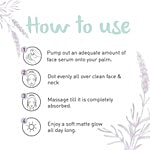 Its revolutionary moisturizer in serum technology ensures that it is water-light on skin even as the rich, hydrating elements it contains offer deep nourishment. Its shine control formula with tea tree oil has a mattifying effect, absorbing excess oils and locking in moisture for hours. Made without any toxic chemicals, this face serum is 100% safe and gentle on skin, leaving it perfectly moisturized with a soft matte finish. Delicately scented with the calming fragrance of lavender essential oil, this face serum will keep your skin looking and feeling its best, all day long.
