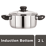Chefset Kaviraj Casserole Cook n Serve With Glass Lid - Stainless Steel, Induction Bottom, 18 cm, 2 L