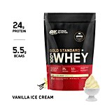 Optimum Nutrition's Gold Standard Whey uses pure Whey Protein Isolates as the primary ingredient. Combined with ultra-filtered whey protein concentrate, each serving provides 24 grams of all-whey protein and 5.5 grams of naturally occurring Branched Chain Amino Acids (BCAAs) which are prized by athletes for their muscle building qualities. With 10 tempting flavours to choose from, ON Gold Standard Whey gives you plenty of ways to keep workout recovery interesting.