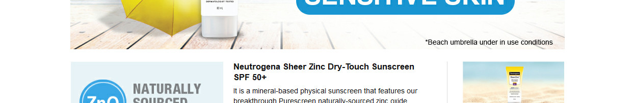 Neutrogena Sheer Zinc Dry-Touch Sunscreen Lotion SPF 50+ PA+++is a mineral sunscreen formulated with a Pure Screen Technology that uses zinc oxide only to provide a superior photostable physical screen barrier on the skin to effectively absorb, reflect and scatter UVA/UVB rays.