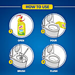 Press sides of cap and twist counterclockwise to open. Squeeze liquid around the bowl and under the rim. Let liquid spread from rim to U-bend. Leave for 2 mins; brush lightly and flush.