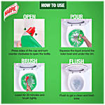 Press sides of cap and twist counterclockwise to open. Squeeze liquid around the bowl and under the rim. Let liquid spread from rim to U-bend. Leave for 2 mins; brush lightly and flush.