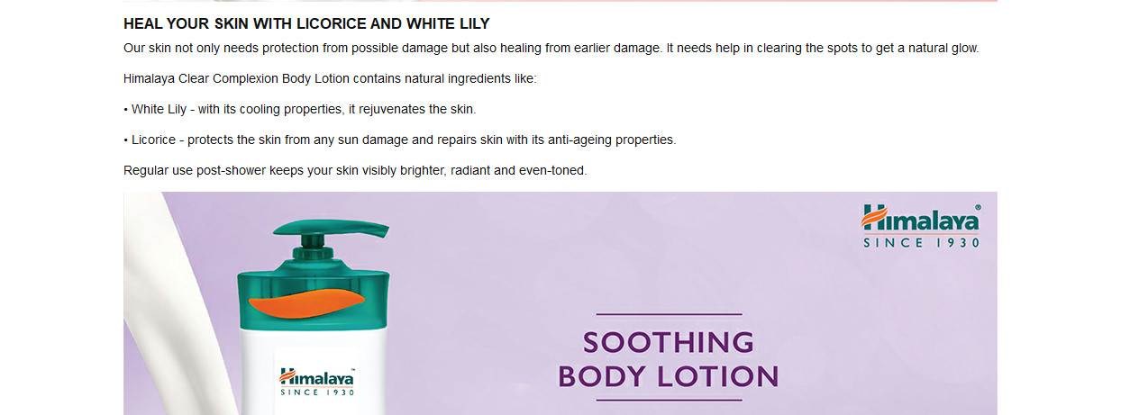Himalaya Clear Complexion Brightening Body Lotion - Even Tone Skin, White Lily & Liquorice